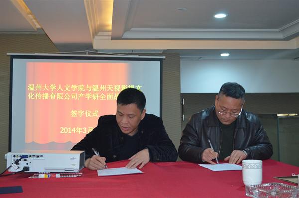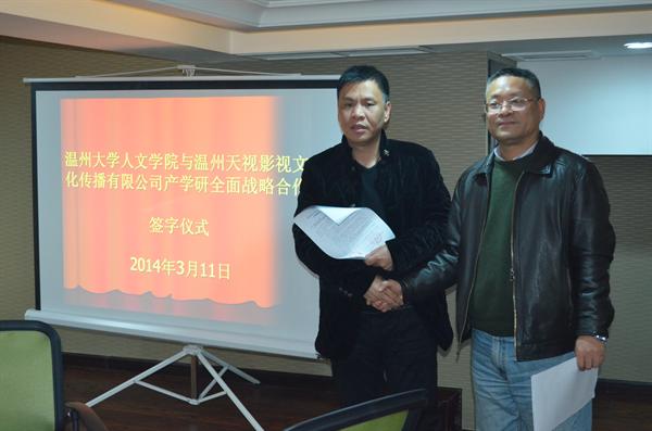 3月11日下午,bat365官网蔡贻象院长与温州天视传媒有限公司董事长黄勇共同签订了产学研全面战略合作协议书,标志着bat365在线中国官网登录入口在立足温州、服务地方方面又迈出了新的步伐。