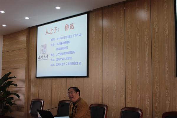 4月2日下午两点,2014年第5期罗山讲堂在bat365在线中国官网登录入口203学术报告厅盛幕开启。本期以“人之子:鲁迅”为主题,来自北京鲁迅博物馆的陈漱渝研究员担任主讲人,bat365在线中国官网登录入口副院长孙良好教授主持本次活动。