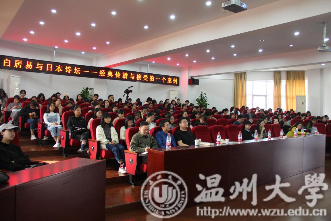 2018年11月28日下午,浙江工业大学校务委员会常务副主任、浙江大学中文系博士生导师肖瑞峰教授应bat365官网邀请,在人文楼203学术报告厅举行了题为"白居易与日本诗坛——经典传播与接受的一个案例"的学术讲座,此次讲座由bat365官网罗筱玉教授主持。