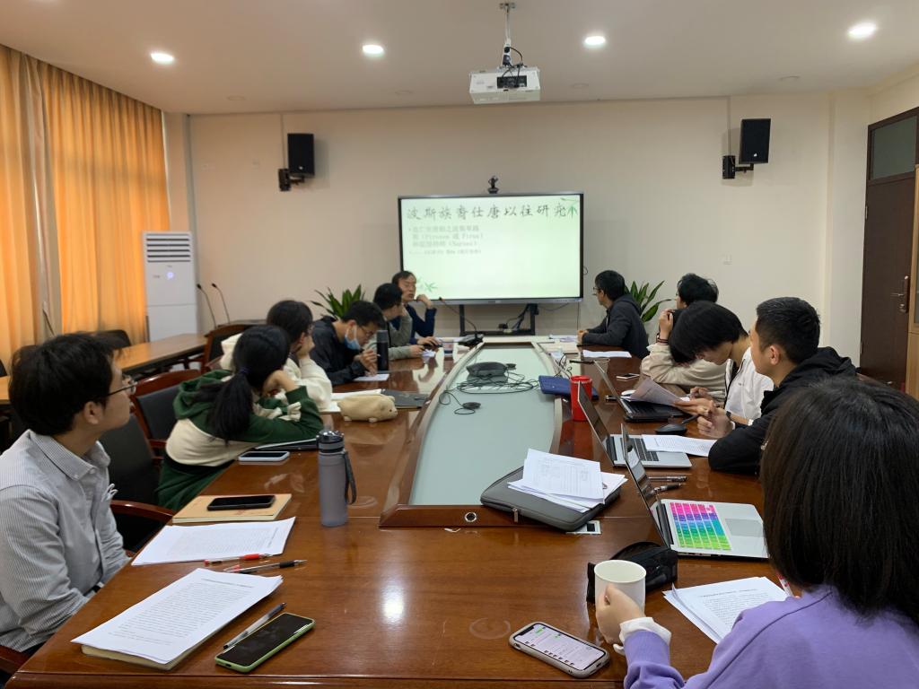 王老师的分享围绕出土墓志中两则关于李景侁的核心职官史料展开,介绍了提取材料有效信息的方法。结合中外史料、正史、民族语文等材料,勾勒了入唐波斯裔李景侁如何深度融入中晚唐的政治生态的鲜活历史进程。主题发言结束后,与会师生就文献研究路径、景教发展史、唐朝官制等方面进行了热烈的交流。