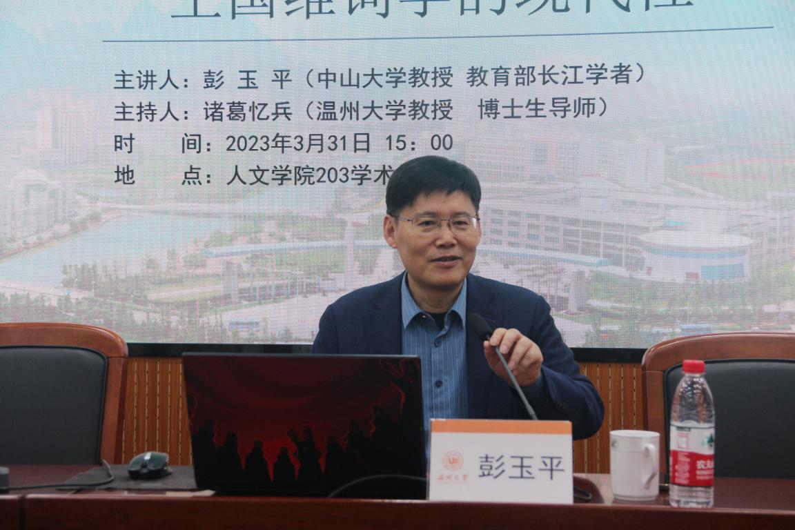 2023年3月31日下午,教育部长江学者、中山大学彭玉平教授为我校学子作了一场题为“王国维词学的现代性”的学术讲座。讲座由bat365官网诸葛忆兵教授主持,约150余名师生参加了此次讲座。