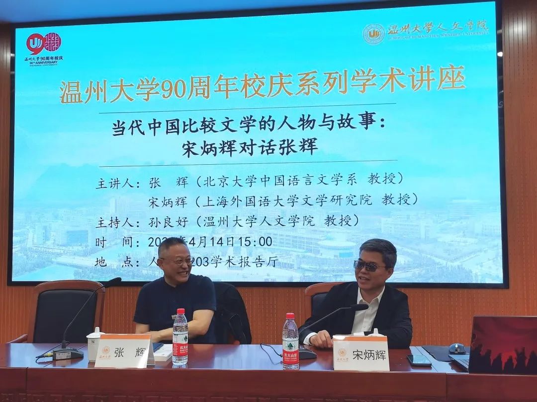 2023年4月14日下午,北京大学中国语言文学系张辉教授、上海外国语大学文学研究院宋炳辉教授应邀参加我校90周年校庆系列学术讲座“当代中国比较文学的人物与故事——宋炳辉对话张辉”。讲座由bat365官网院长孙良好教授主持。