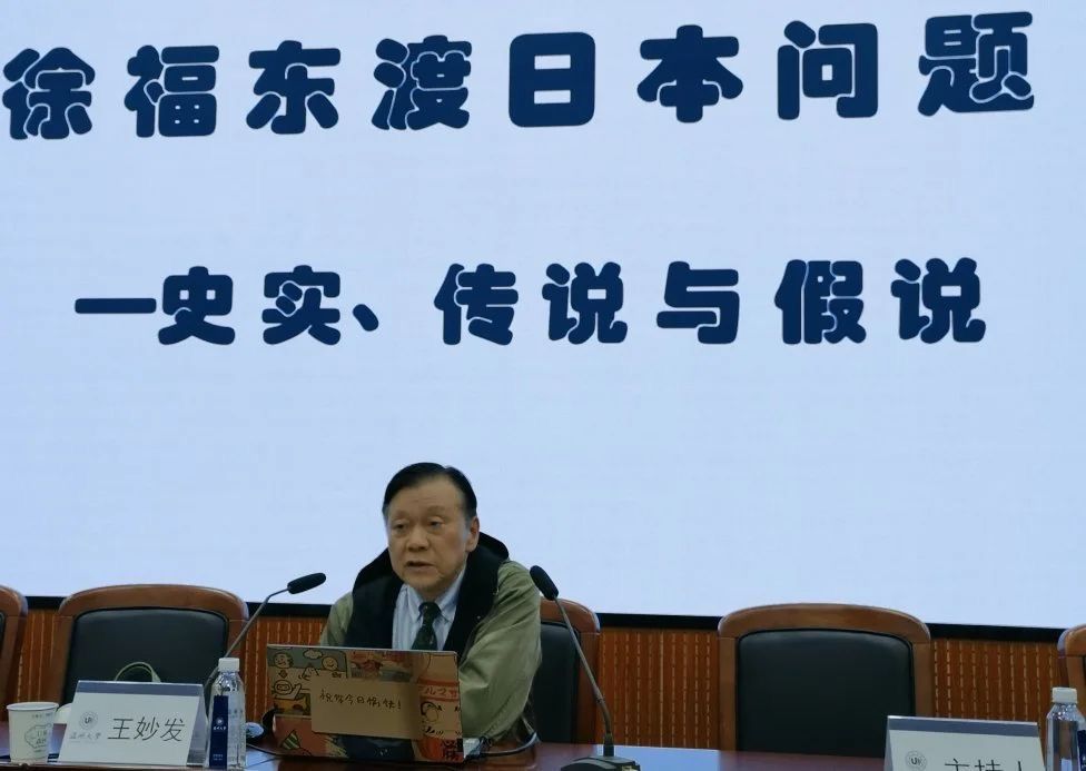 2023年11月27日晚,日本和歌山大学名誉教授,复旦大学中国历史地理研究所教授、博士生导师王妙发老师应邀莅临bat365官网,作题为“徐福东渡日本问题:史实、传说与假说”的学术讲座。讲座由bat365官网历史系祁刚老师主持,历史系部分教师,各专业本科生、研究生共计90余人参加本次活动。