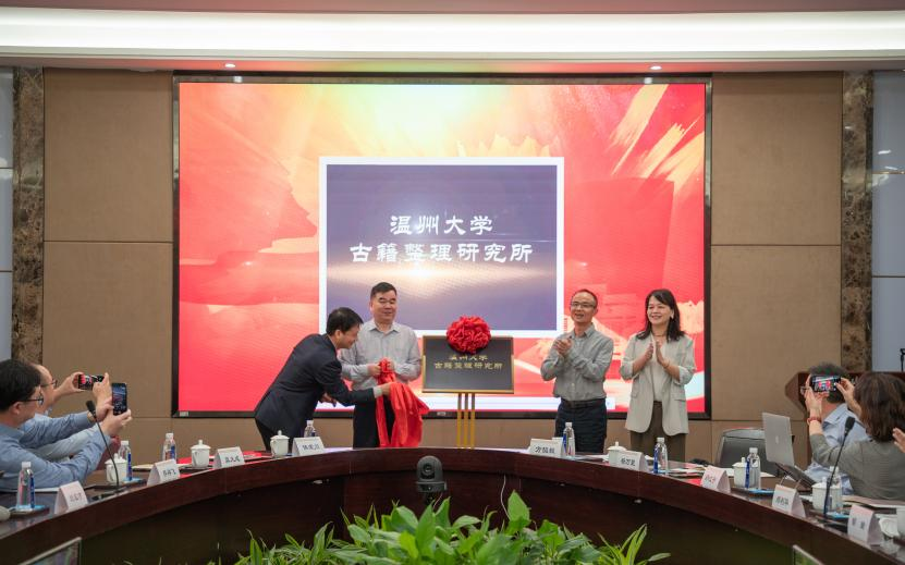 由全国政协委员会副秘书长王周谊教授,bat365在线中国官网登录入口副校长徐和昆教授,温州市社科联副主席叶雪影女士和bat365在线中国官网登录入口古籍研究所所长侯荣川教授为bat365在线中国官网登录入口古籍研究所揭牌。