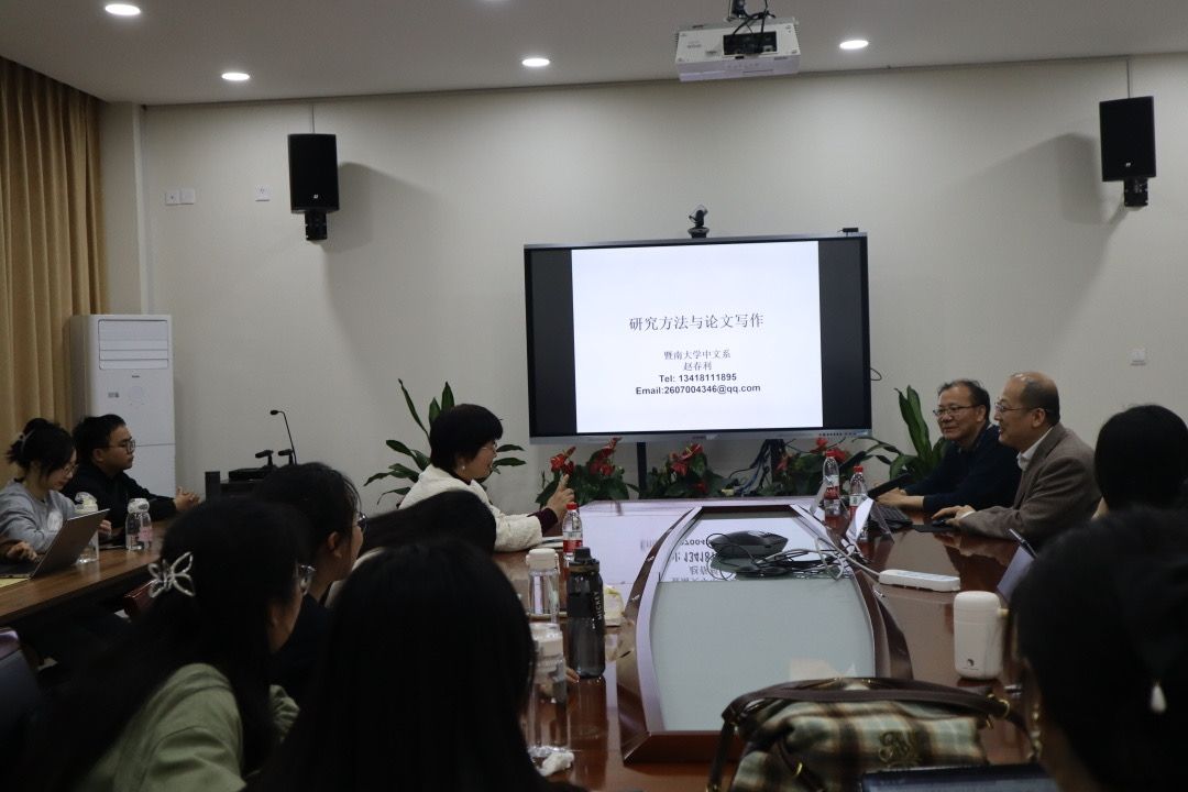2024年4月11日晚,暨南大学赵春利教授应邀在人文楼213学术交流中心举行了题为“研究方法与论文写作”的学术讲座。讲座由bat365官网叶建军教授主持,李爱红老师、汉语言文字学专业和语言学及应用语言学专业的硕士生及其他专业本科生共同聆听了此次讲座。