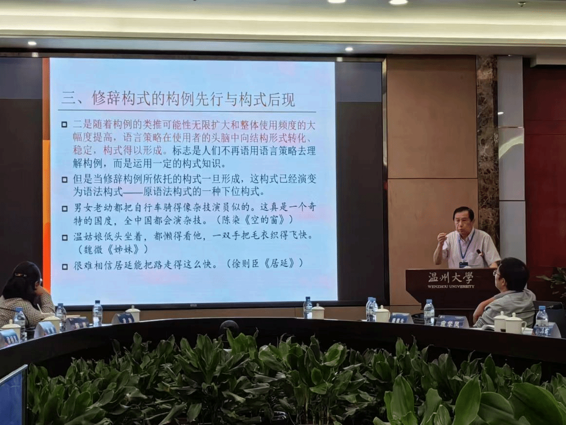 浙江师范大学教授傅惠钧的报告《从变异性看辞格的对象范围—兼及辞格与修辞构式的关系》认为变异性是辞格的核心特征,体现为体变和用变两个层面;辞格的变异性存在程度差异,变异性较弱的非典型辞格属于“准辞格”;具有变异特征而未形成固定格式的个人临时创造形式属于“前辞格”;当变异性明显弱化便成为词汇语法现象退出辞格系统。