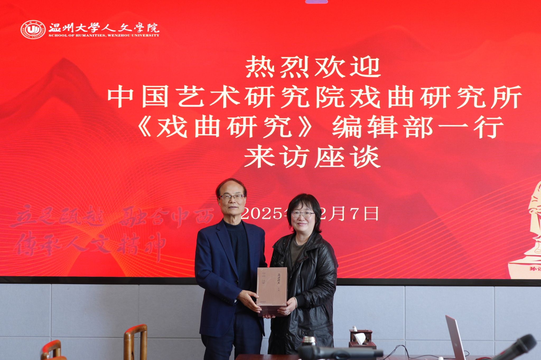 活动尾声,《戏曲研究》编辑部向浙江传统戏曲研究与传承中心赠送了刊物优秀论文选等,全体与会人员合影留念。