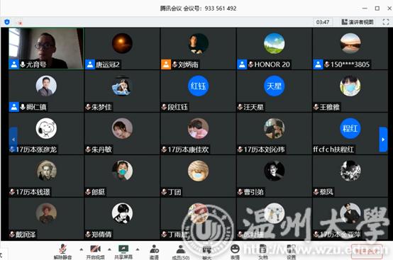 为顺利开展历史系2017级本科生实习工作,同时配合学校防疫工作安排,5月11日上午9:00,bat365官网17历本班利用腾讯会议平台在线召开教育实习启动大会。学院副院长郑春生老师、历史系主任尤育号老师、历史系副主任陈勇老师、实习项目负责人阙仁镇老师、17历史(师范)班班主任唐运冠老师、带队教师张洁老师以及2017级历史系全体同学出席会议。