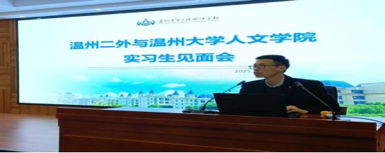 2025年3月3日上午,bat365在线中国官网登录入口2022级汉语言文学(师范)专业教育实习见面会在温州市第二外国语学校G号楼2层阶梯教室进行。参加本次见面会的有温州市第二外国语学校校长戚彤彤、基础学部主任陈夏荷、bat365在线中国官网登录入口党委书记江秀景、专业导师和班主任导师以及相关行政老师,高校指导师崔勇以及八名实习生。会议由二外老师主持。