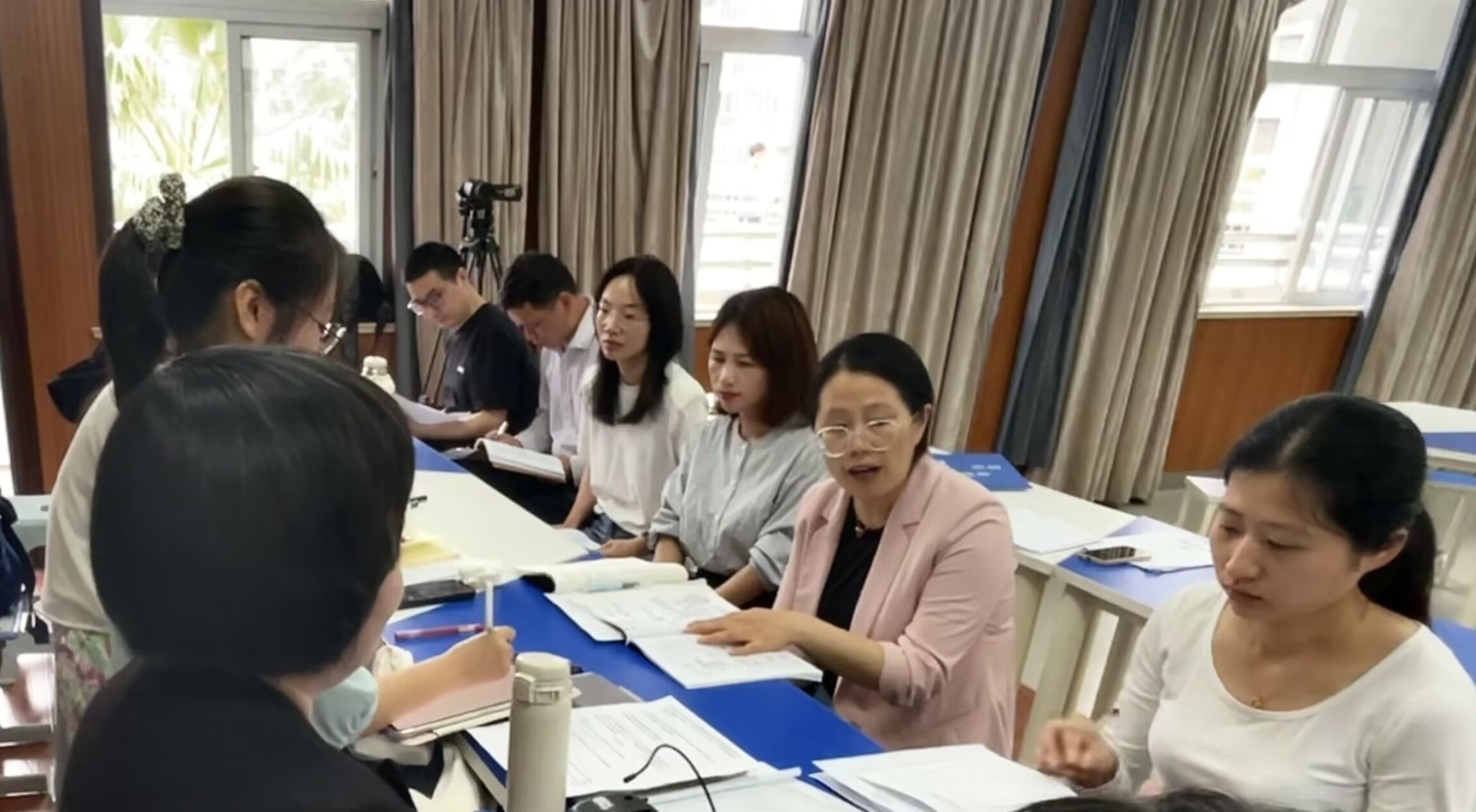 首先带教老师胡淑红老师肯定了陈羽姿和王一涵同学在实习期间的进步。她表示,两位同学能紧扣游记三要素,以情境驱动教学,教学思路清晰,课堂氛围活跃。王老师教风细腻敏捷,以旅游路线贯穿教学,为学生搭建思考台阶;陈老师善于抓住重点,教学设计极具吸引力。