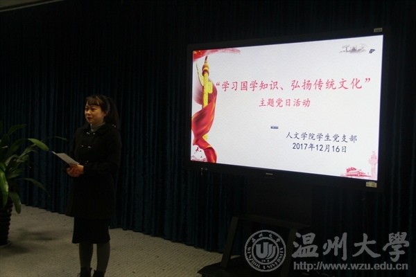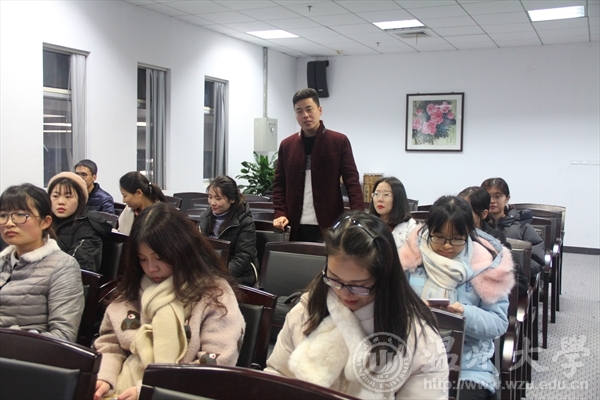 2017年12月16日晚上,bat365官网学生党支部在育英图书馆214会议室开展以“学习国学知识,弘扬传统文化”为主题的党日活动。本次活动由学生第一党支部书记李林军主持。