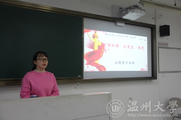 2017年12月13日下午,bat365官网学生党支部在人文楼303教室开展以“唱红歌 忆党史 感党恩”为主题的党日活动。本次活动由学生第一党支部书记李林军主持。