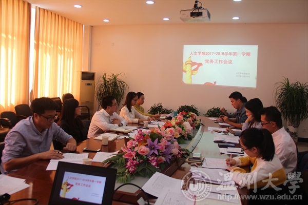 会上,学院党总支副书记朱启鑫首先对十九大报告要点进行了梳理和解读,对本学期研究生党建工作重点进行了部署。研究生支部书记和党员志愿服务中心负责人分别交流了本学期的工作思路和计划。随后大家围绕理论学习、实践活动以及“一部一品”建设等问题开展了热烈的讨论。最后党总支书记吴静总结发言。吴书记言简意赅,要求各支部从组织建设、思想建设和品牌建设三个方面发力,扎实推进支部的规范化建设;从思想上“真信”、学习上“真学”、工作上“真干”三个方面提高理论素养和工作水平,切实推动学院研究生党建工作再上新台阶。