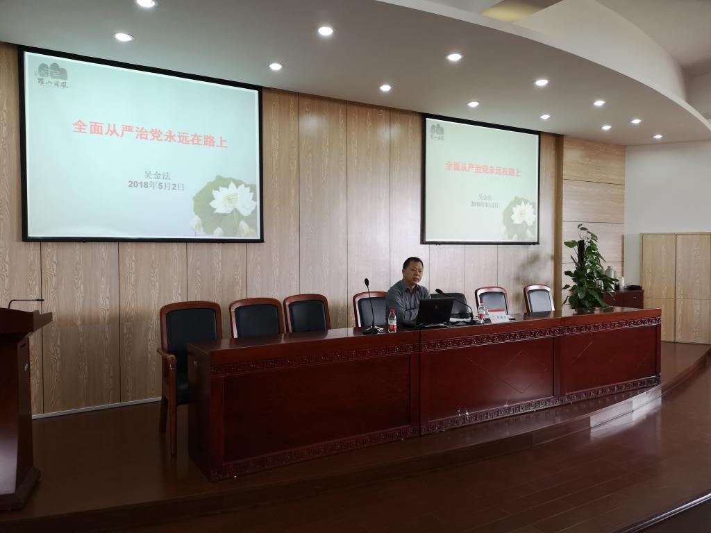 吴金法书记首先围绕“全面从严治党永远在路上”的主题,从作风建设、重拳反腐、党内监督、建章立制四个方面讲述了党的十八大以来我国全面从严治党取得的显著成效,分析了当前反腐败斗争的总体形势与发展趋势。吴金法书记指出,十九大对全面从严治党作出了新的部署,坚定不移地推进全面从严治党工作是新时代党的建设总要求。他强调作风建设永远在路上、反腐败斗争永远在路上、全面从严治党永远在路上。