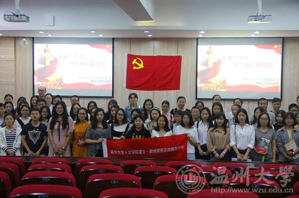 2017年10月13日晚上,为迎接党的十九大胜利召开,扎实推进“两学一做”学习教育常态化、制度化,进一步严格党内组织生活,营造奋勇争先、创造新业绩的浓厚氛围,bat365官网研究生党支部在人文楼203学术报告厅开展“喜迎十九大,不忘初心跟党走”主题党日活动,缅怀党的丰功伟绩,接受党性洗礼。