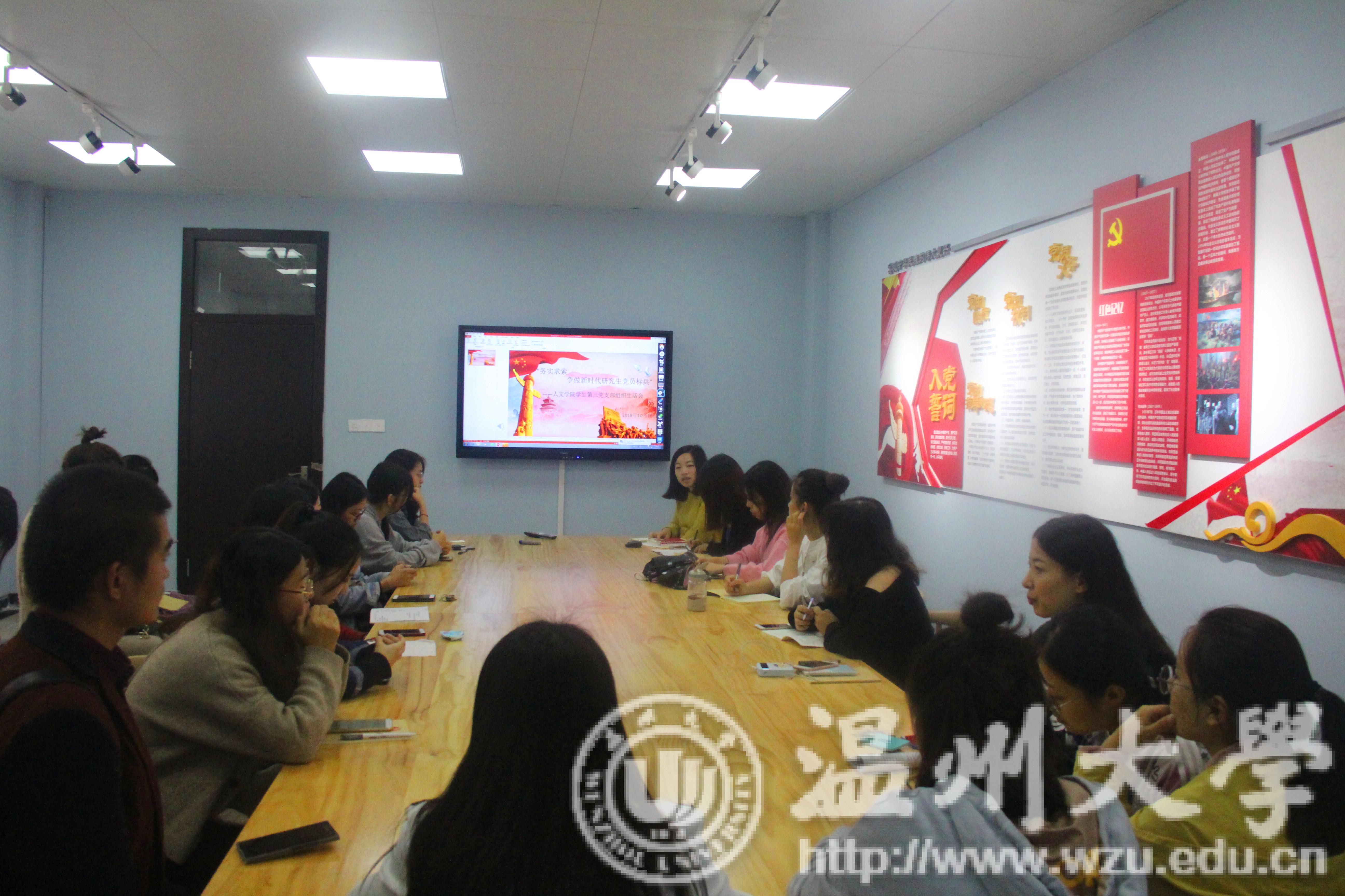 2018年10月16日下午,bat365官网学生第三党支部于北校外语楼党员之家221会议室召开以“务实求索:争做新时代研究生党员标兵”为主题的组织生活会,会议由学生第三党支部书记徐珍主持。