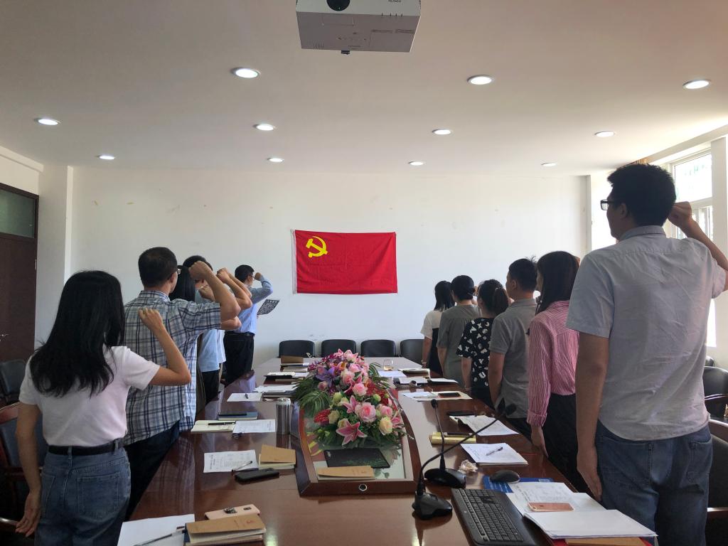 活动中,全体党员首先重温入党誓词,面向党旗庄严宣誓,以誓词问初心,以誓言铭信仰。宣誓完毕后,吴静书记与魏一副书记率先与大家分享了各自入党的心路历程,带领大家重忆入党经历,重问入党初心,重申入党使命。随后全体党员共同学唱红歌《歌唱祖国》,党员们以昂扬的精神唱出爱国爱家的深厚情感,催人奋进,再现了中国共产党带领全国各族人民经过艰苦卓绝的斗争,在实现中华民族伟大复兴的道路上奋勇前进,迈向新时代的新征程。活动最后,党员们结合支部工作方案,围绕自主学习计划和“七个一”学习要求进行了充分研讨。党员们纷纷表示,要紧紧围绕中心工作,立足岗位实际,将主题教育活动与工作紧密结合起来,在学校学院的快速发展中建功立业。