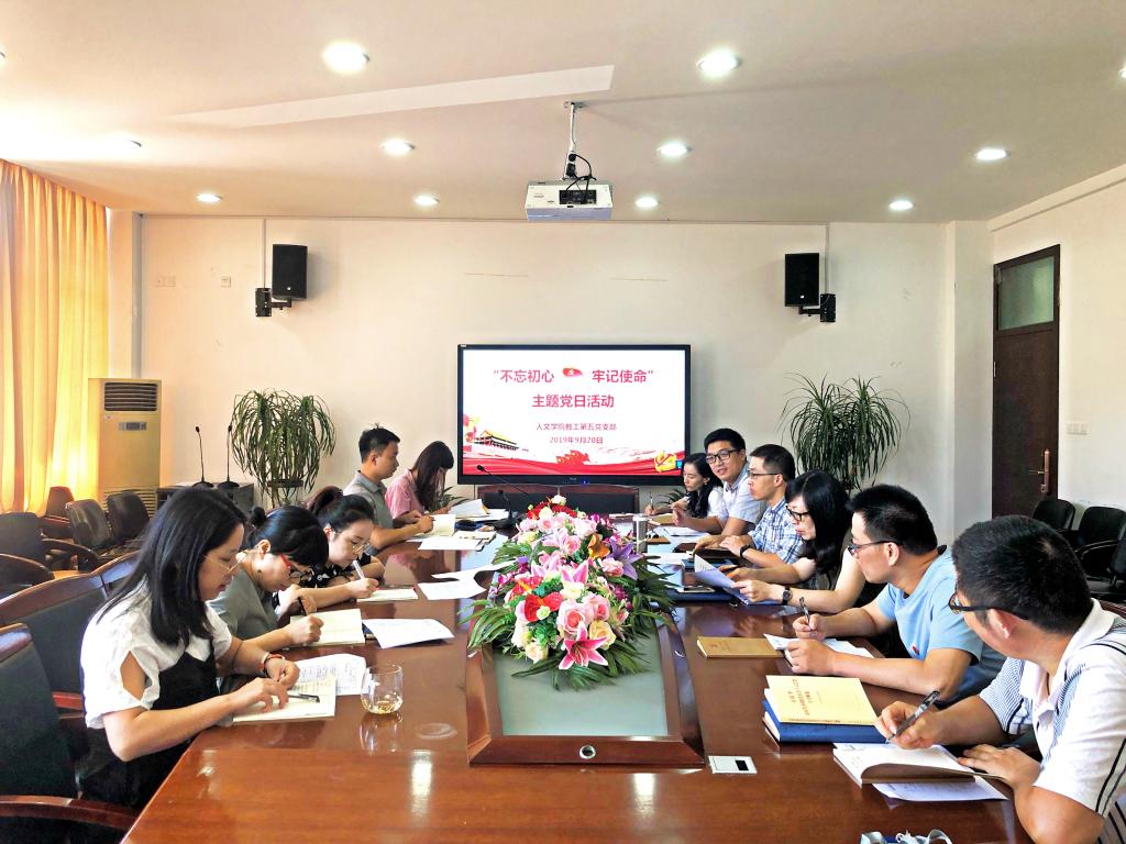 9月20日上午8:30,bat365官网教工第五党支部在北校人文楼213会议室召开“不忘初心,牢记使命”专项学习教育之“四重四敢”主题党日活动。活动由党支部书记刘纪峰主持。