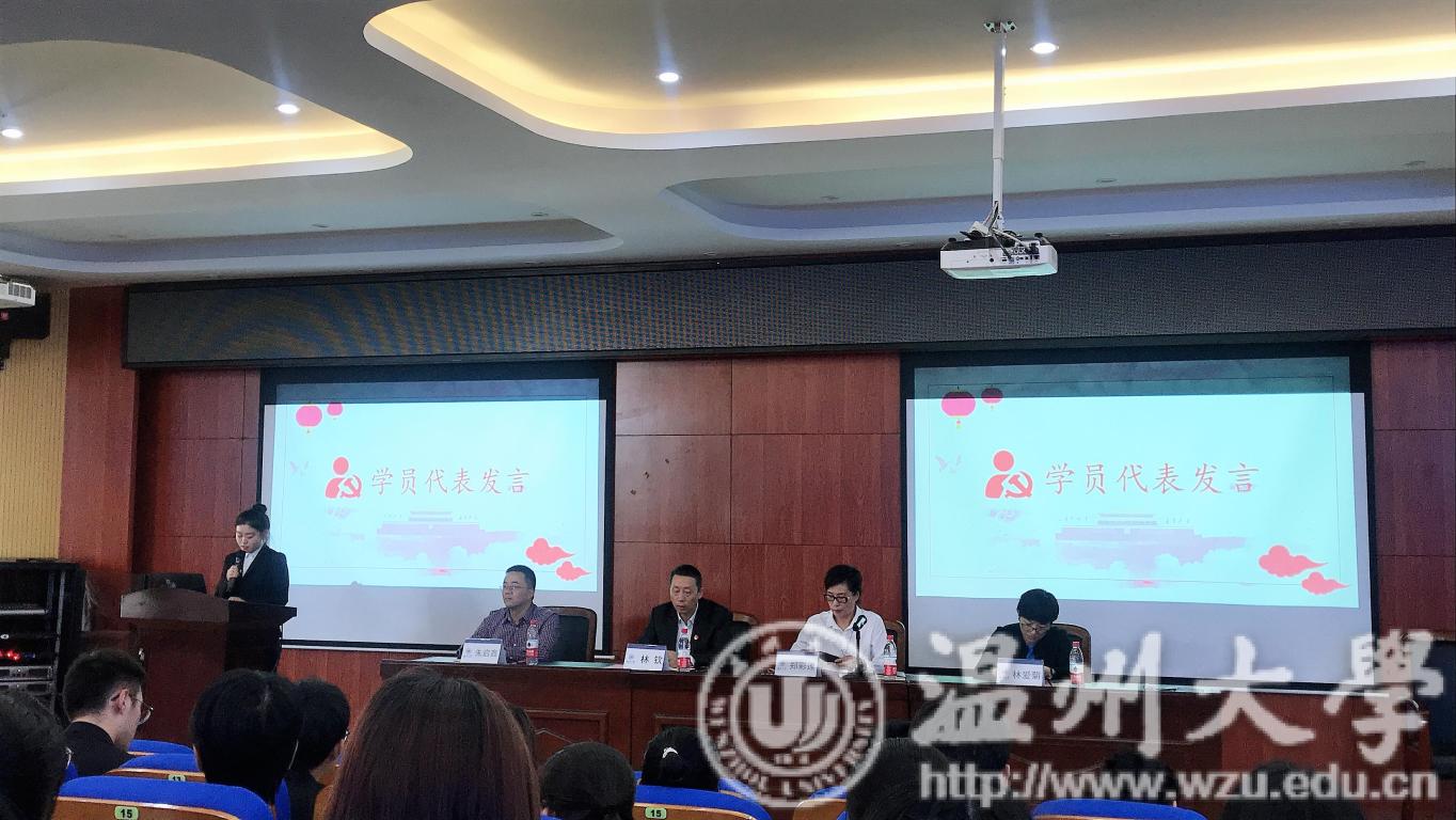 2019年11月6日下午,中共bat365在线中国官网登录入口委员会党校分党校(联合)2019年第2期发展对象培训班于北校3号楼203学术报告厅正式开班。出席开班典礼的领导有:法学院党委书记林钦、商学院党委书记郑彩莲、音乐学院党委书记朱启鑫和国际教育学院党委书记林爱菊。典礼分为四个部分:奏唱国歌、商学院党委书记郑彩莲老师致辞、宣读《学员守则》、学员代表发言。