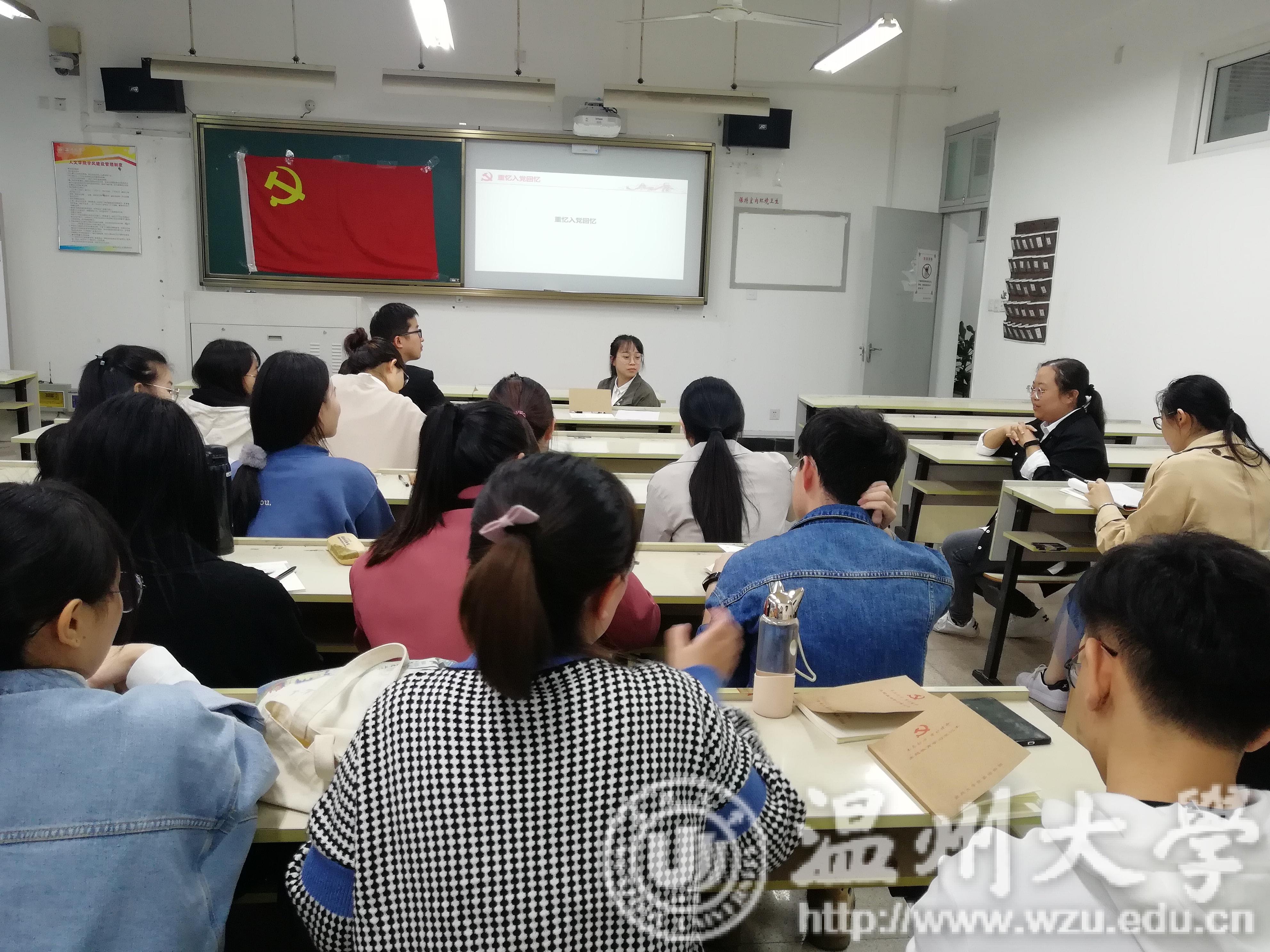 2019年11月7日,bat365官网学生第一党支部于人文楼303教室召开“四重四敢”主题党日活动,会议由支部书记李林军主持。