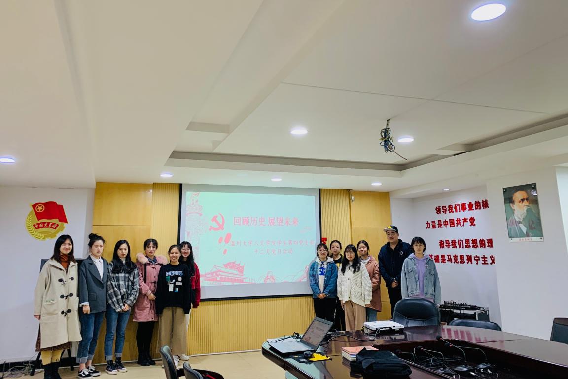 2019年12月15日,bat365官网学生第四党支部的十三位同志相聚在超豪学区四号楼党员之家,开展了一场以“回顾历史,展望未来”为主题的党日活动。在党史知识的趣味竞答过程中,各位党员强化了对党的理论认识,从党史中学习了经验和方法,进而更好地展望未来。