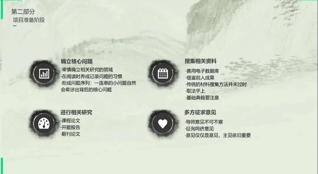 本次会议分为六个流程:立项介绍、立项流程介绍、立项注意事项、往年立项通过情况、经验交流与分享、提问环节。在经验交流与分享环节,2018级中国古代文学专业的马东旭结合自己的科研经历就如何确立核心问题,如何搜集相关资料等方面分享经验;2018级语言学及应用语言学专业的武远佳从立项准备和立项申请两个方面介绍自己的经验;2019级文化创意学崔梦鸽谈及科研立项的契机是自己之前感兴趣的相关问题,后来经过查找资料和社会调研发现此问题有深入研究的必要性和可行性。在最后的互动提问环节中,同学们针对自己的疑问踊跃发言,经验分享者们积极地回答了同学们的问题。