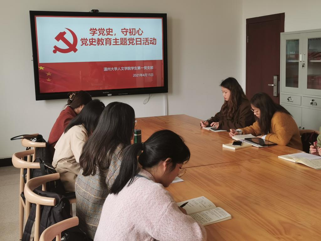 2021年4月15日,bat365在线中国官网登录入口学生第一党支部在人文楼党员之家活动室举办党史教育主题党日活动,由支部组织委员何锦顶主持。
