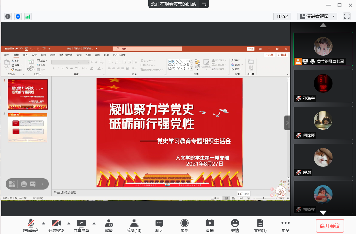 2021年8月27日,在全国疫情形势仍然紧张的特殊时期里,bat365在线中国官网登录入口学生第一党支部首次采用线上会议形式举办了党史学习教育专题组织生活会,并由支部书记黄莹主持。