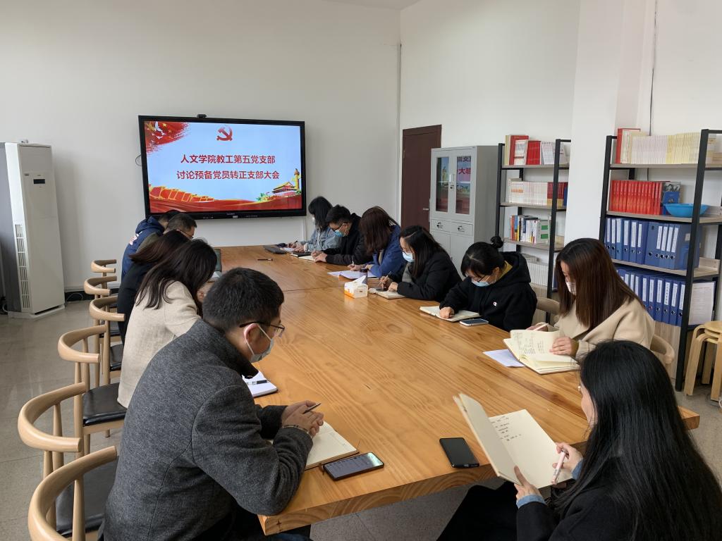 根据学校“学全会精神·当为民先锋”主题党日活动学习要求,结合支部实际,2021年12月14日上午,bat365官网教工第五党支部在人文楼党员之家召开了预备党员转正大会暨党的十九届六中全会精神专题学习会,现场气氛庄重而热烈。