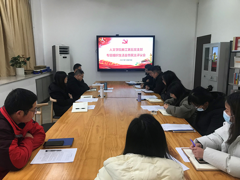 为进一步深化党史学习教育成果,发扬自我革命精神,根据学校通知要求,2021年12月28日下午,bat365官网教工第五党支部在人文楼党员之家召开了2021年度专题组织生活会暨民主评议会。