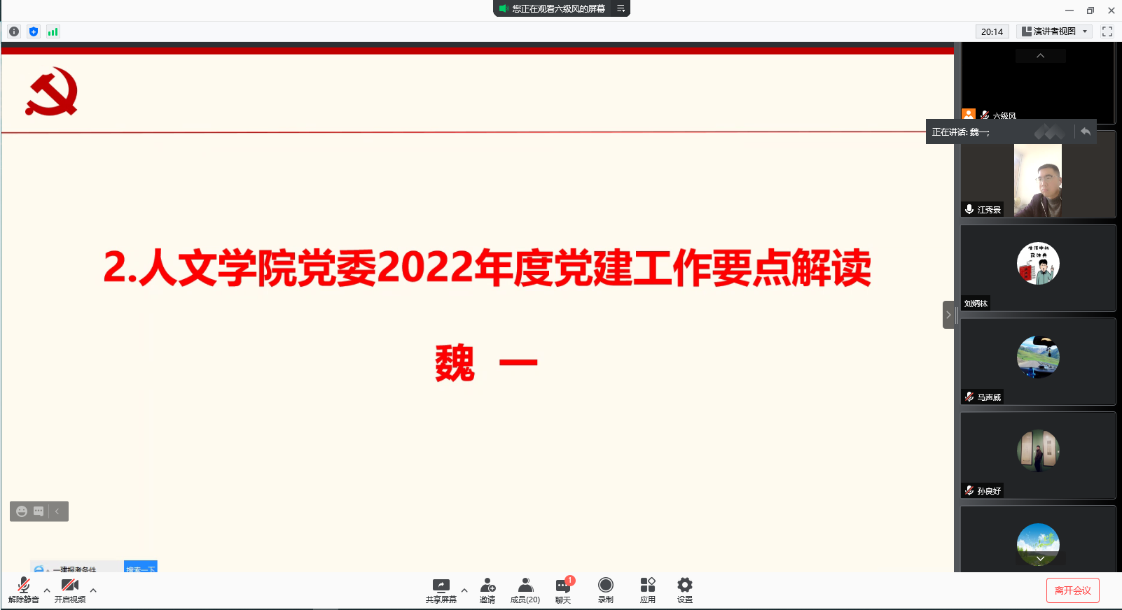 院党委副书记魏一详细解读《中共bat365在线中国官网登录入口委员会2022年度党建工作要点》。本年度,bat365在线中国官网登录入口党委将围绕学校年度工作主题主线,紧扣学校党建工作要点,分别从政治建设、组织基础、引领发展3个方面,持续做深做细做实14项重点工作,为学院6个“一流”建设提供强大的政治、思想和组织保证。