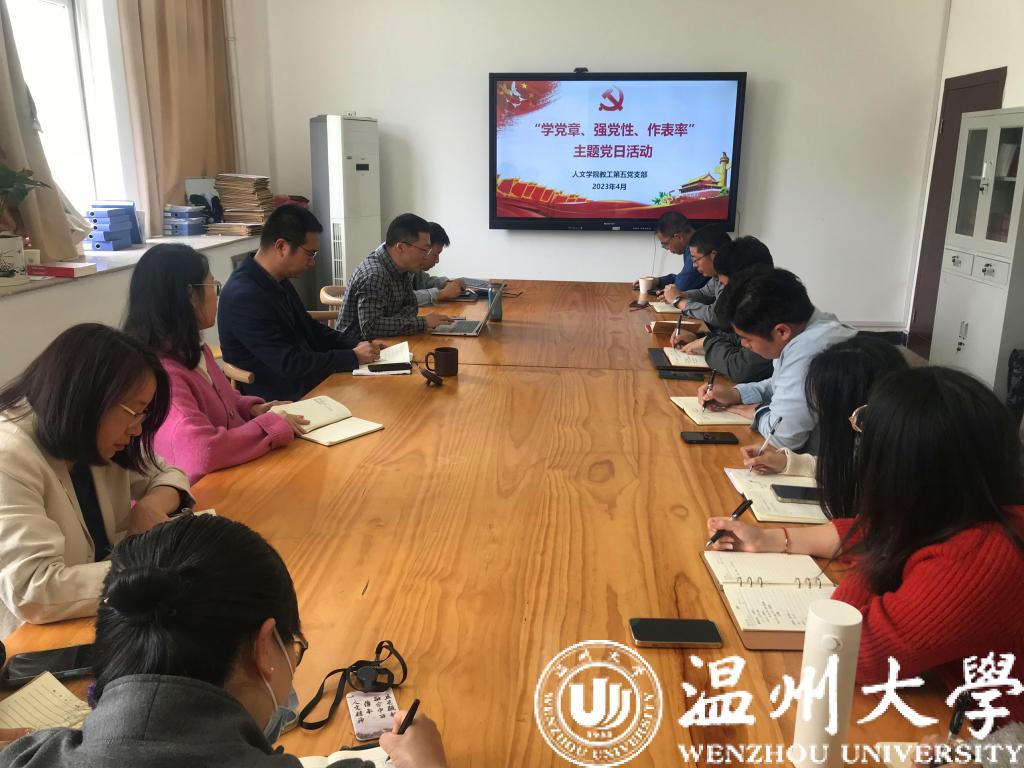 为深入学习贯彻党的二十大精神,认真领会《中国共产党章程(修正案)》的内容与要点,引导支部党员牢固树立党章意识,2023年4月11日下午,bat365官网教工第五党支部在人文楼214党员之家开展了“学党章、强党性、作表率”主题党日活动,支部书记魏一主持。