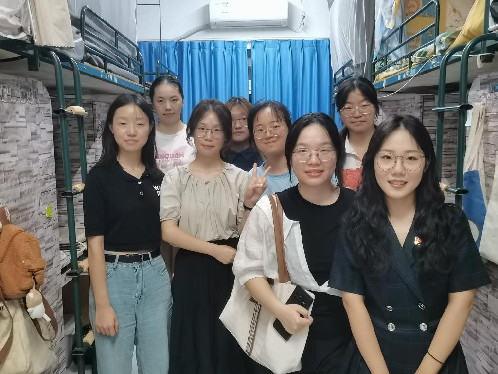 学生第一二三四党支部的学生党员们前往23级本科新生寝室,向新生讲解党的基础理论知识,仔细介绍了有关大学入党的相关条件和程序,向他们展示了近年来各党支部所取得的一些成绩,并引导萌新们向党组织靠拢。不仅如此,学生党员们还对新生在生活上提出的问题进行一一解答,热情提醒接下来军训的注意事项,让本科新同学感受到了党组织的温暖,帮助新生们早日适应大学生活,早日成长为有理想、敢担当、能吃苦、肯奋斗的新时代青年。