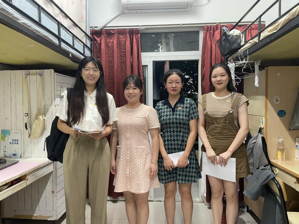 学生五六七八党支部的学生党员则是前往23级研究生新生寝室,同样以真诚的态度向新生讲解了发展党员的基本流程和各党支部的基本情况,鼓励新生以身边优秀的学生党员为榜样,不忘初心、锐意进取,系统规划学习生涯和将来职业选择,从容面对崭新的生活。学生党员与新生的亲密交流,不但拉近了新生和党组织之间的距离,而且为壮大优秀党员队伍打下基础。