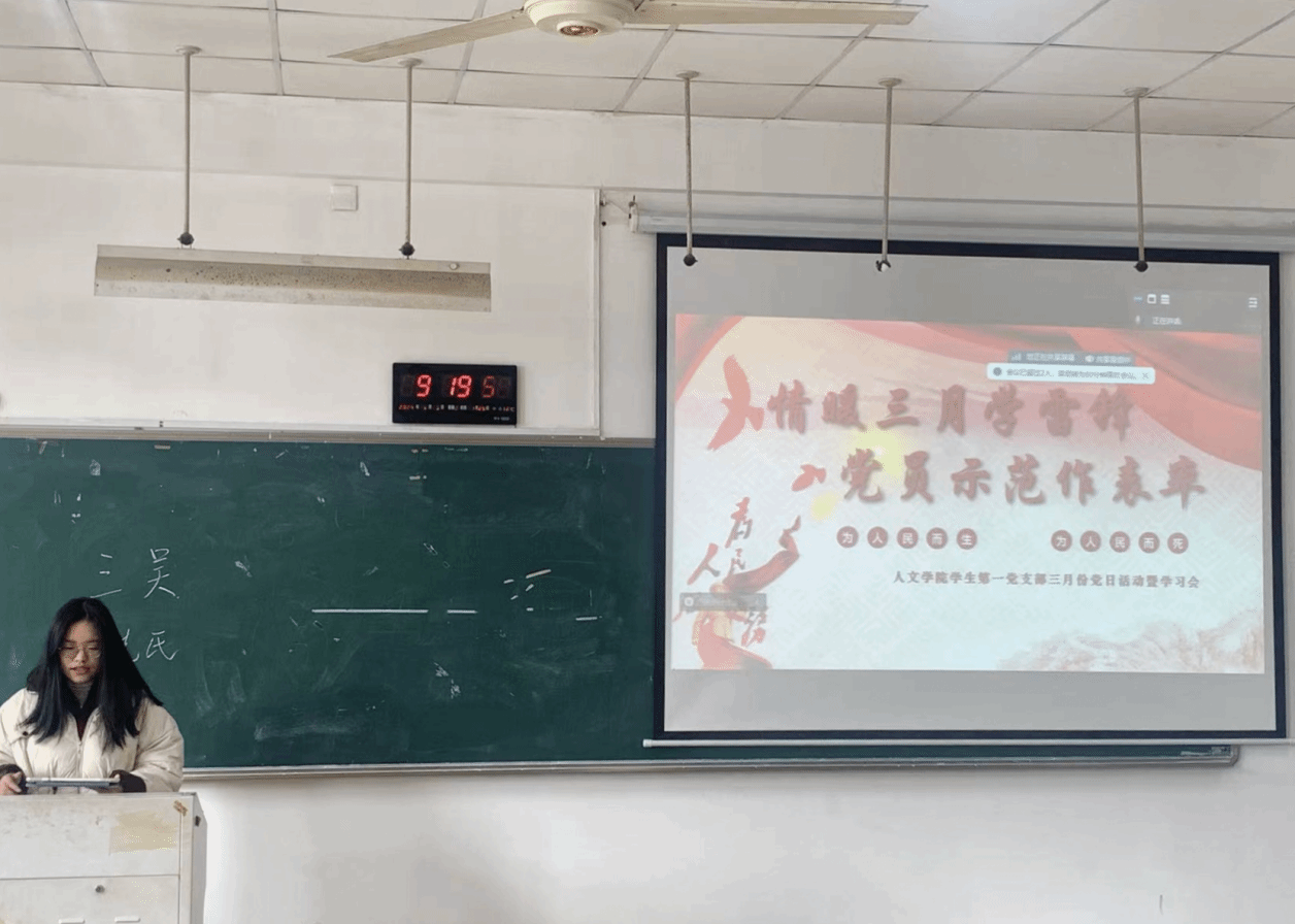 2024年3月5日是第61个全国学雷锋纪念日,为学习雷锋精神,传承榜样力量,当日上午9:00,bat365在线中国官网登录入口学生第一党支部于人文楼201教室开展了以“情暖三月学雷锋,党员示范作表率”为主题的党日活动暨学习会。本次活动由袁璐婷同志主持,共有29名同志参加。