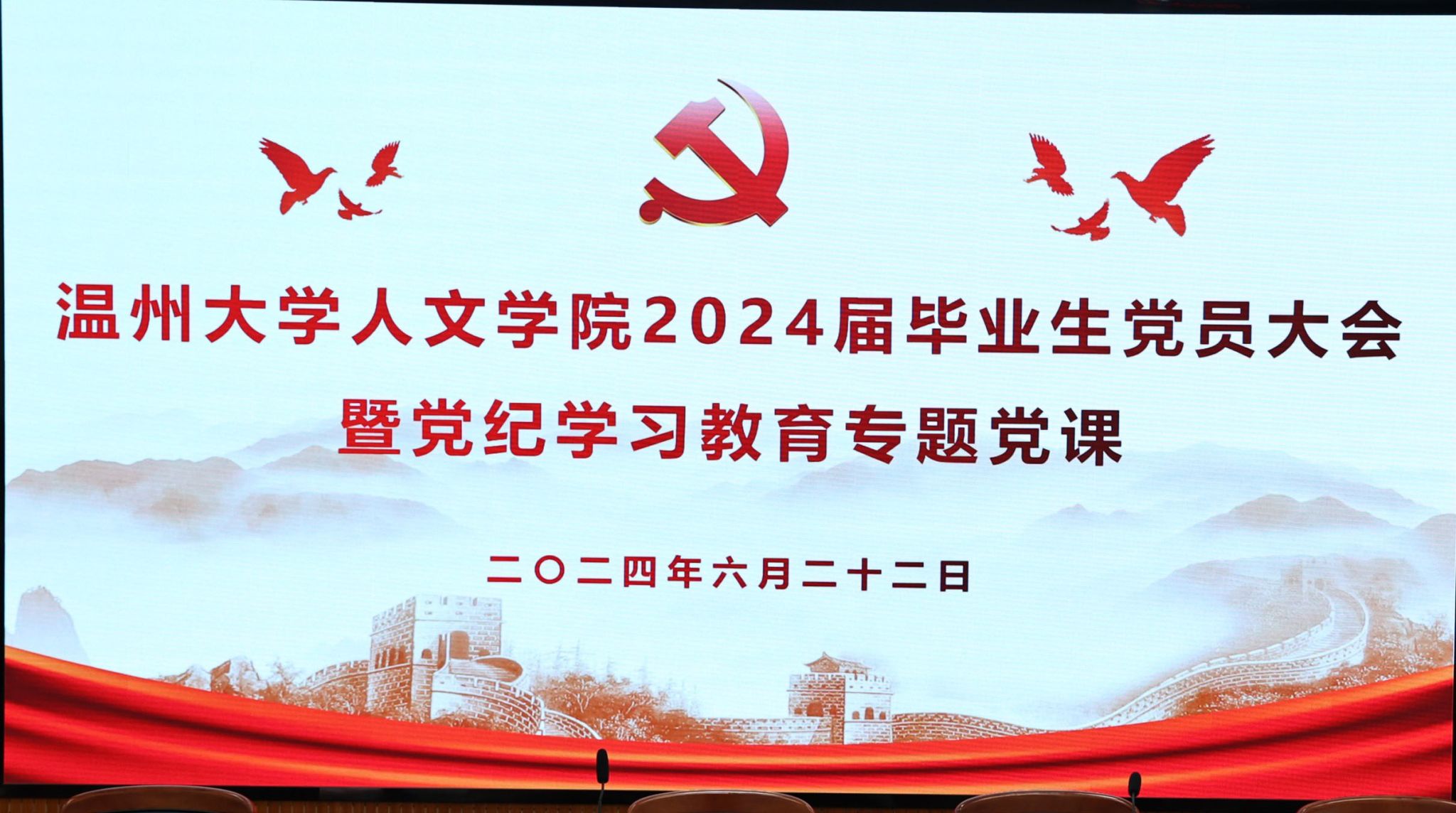 2024年6月22日9:00 bat365在线中国官网登录入口2024届毕业生党员大会暨党纪学习教育专题党课于人文楼203学术报告厅召开。院党委书记江秀景,学工办副主任申业磊,学生党支部书记刘炳林老师、王佳慧老师及学院全体毕业生党员出席此次大会。此次会议共分为六个部分。
