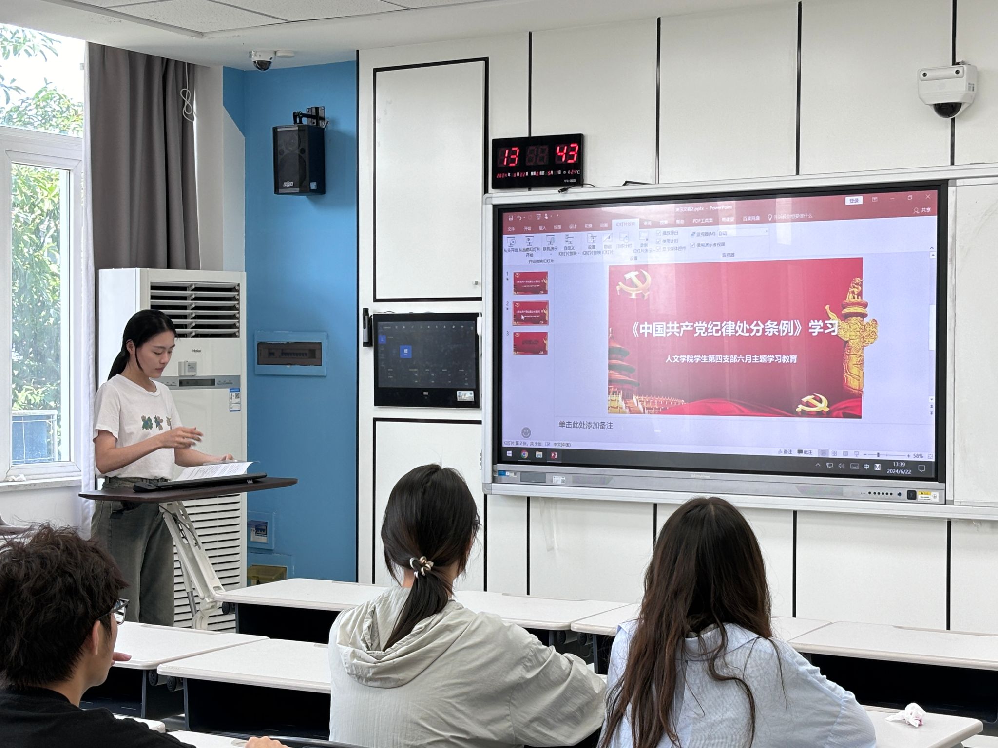 为深入学习贯彻习近平总书记关于党纪学习教育的重要讲话和重要指示精神,帮助广大党员同志深入学习《中国共产党纪律处分条例》,推动党纪学习教育走深走实,bat365在线中国官网登录入口学生第四党支部于6月22日下午13:30在人文楼412开展了“学党纪党规,守纪律底线”的六月主题党日活动。