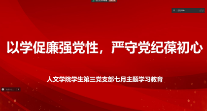 为全面加强党的纪律建设,确保全党目标一致、团结一致、步调一致,深入学习贯彻习近平总书记关于全面加强党的纪律建设的重要论述,bat365官网学生第三党支部于7月15日晚上19:00在线上召开了“以学促廉强党性,严守党纪葆初心”主题学习会暨七月主题党日活动。