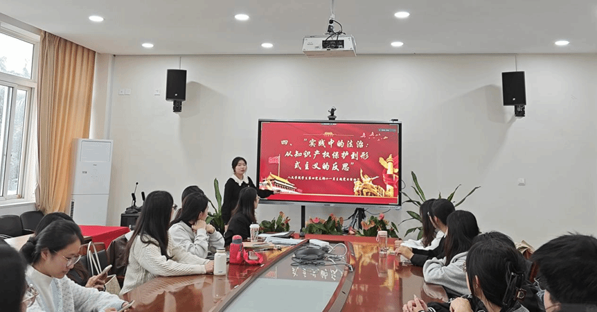 活动伊始,汤汤同志就习近平法治思想和知识产权保护的含义及意义进行阐述,旨在增强全体党员的法治意识,坚定不移地推进依法治国的方针。汤汤同志结合当下热门话题:“学校钉钉打卡交作业的案例”,对形式主义的表现以及形式主义带来的严重后果展开分析,呼吁引导各位党员同志转变工作理念和方式,立足实际,注重实效,切忌形式主义。