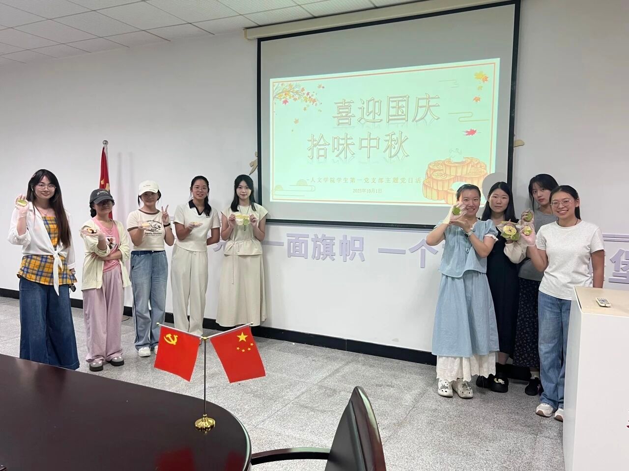 活动落幕,活动室渐归安静,空气中萦绕的淡淡月饼香与满室温情却久久不散。这个假期,bat365在线中国官网登录入口学生第一党支部的同志们,有人选择留校相聚,在亲手制作的月饼里品味集体的温暖;有人暂别校园返家,在亲人的陪伴中感受传统佳节的团圆。无论身在何处,大家都以各自的方式,为国庆添上了一抹清甜的中国红,也让这个双节,既有校园的青春暖意,也有归家的温馨圆满。