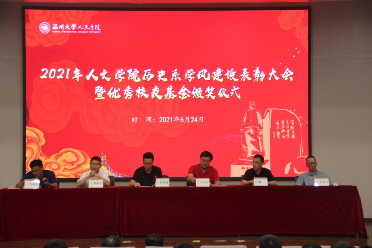 2021年6月24日,bat365官网历史系2021年学风建设表彰大会暨优秀校友基金颁奖典礼于北校区信息楼报告厅举行。此次表彰大会暨颁奖典礼由bat365官网历史系发展基金会会长刘建国主持,院长孙良好、副院长郑春生、党委副书记魏一、历史系主任尤育号、97届校友徐联春以及历史系全体师生出席了此次会议。