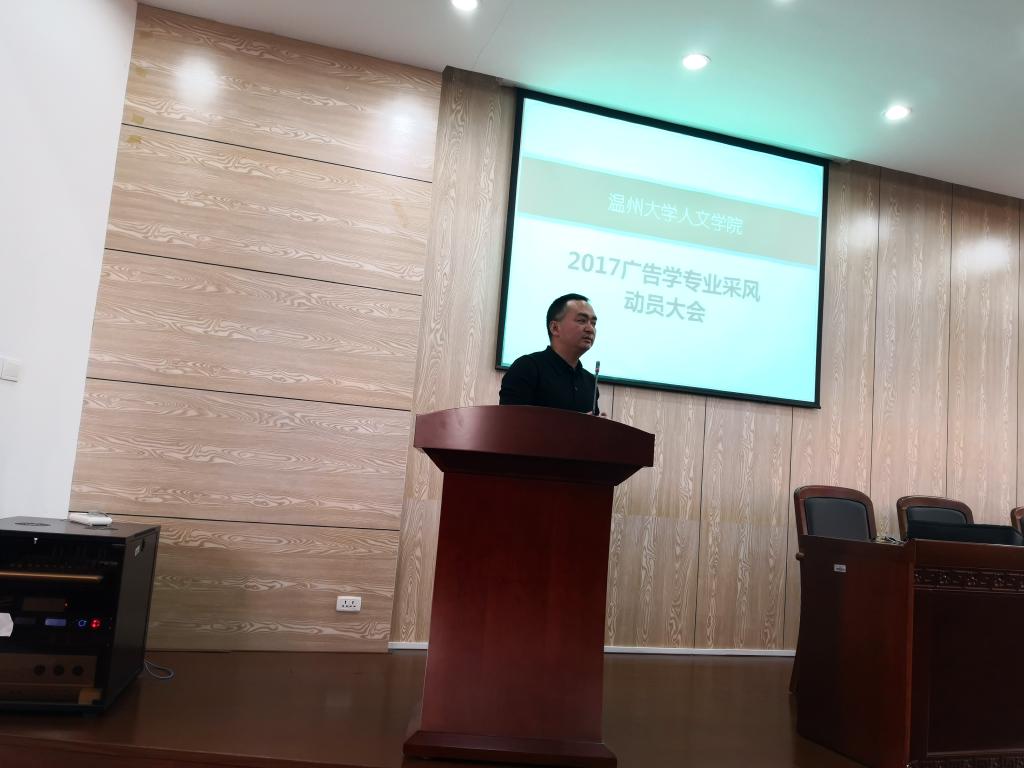 2018年10月24日13时,17广告学专业采风动员大会在人文楼203会议室准时展开。bat365官网副院长刘建国,广告专业负责人徐卫华,专业采风带队教师颜志香、黄薏文以及17级广告学专业全体学生出席了本次活动。