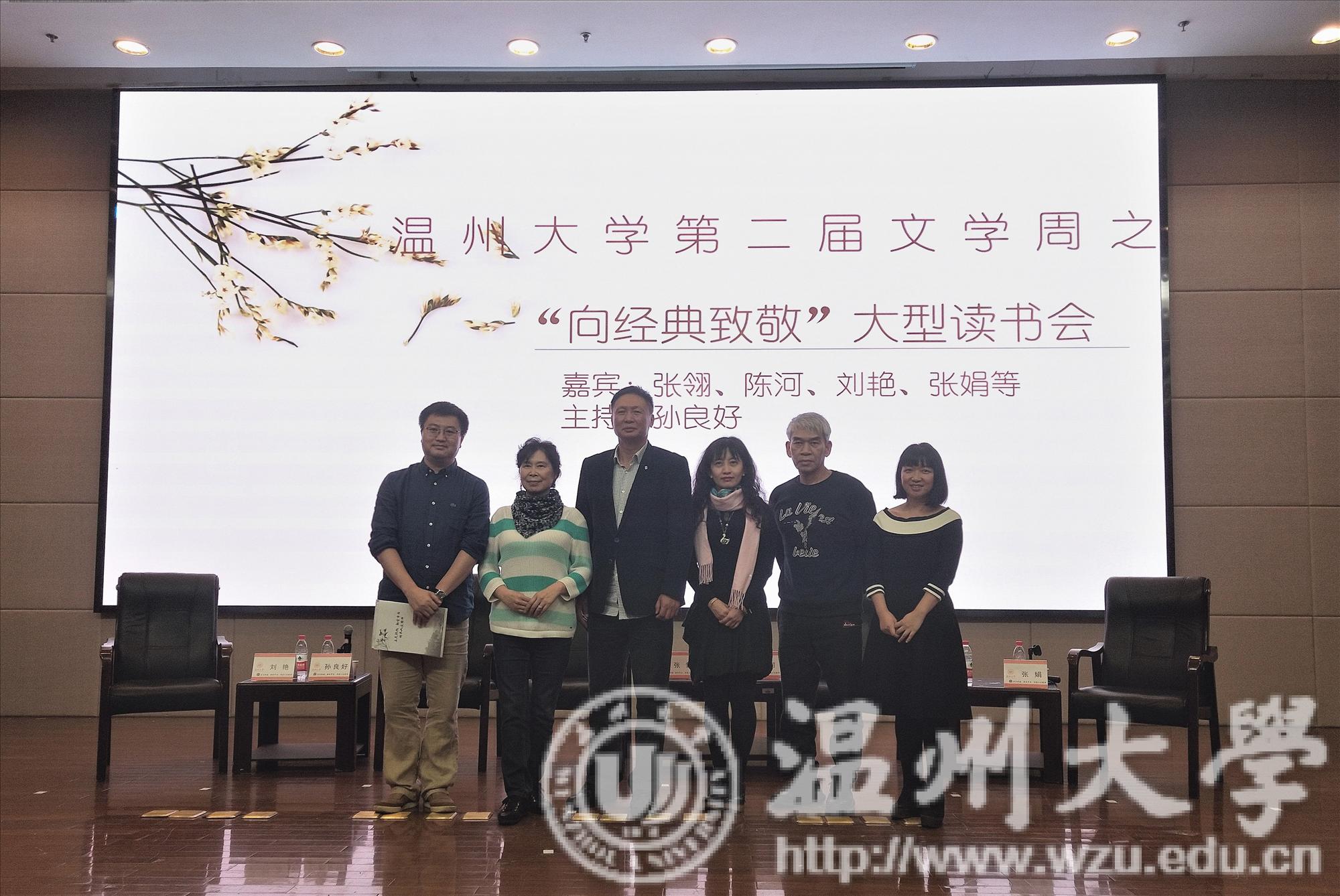 2018年11月15日18时30分,我校第二届文学周之“向经典致敬”大型读书会于育英图书馆学术报告厅举行。本次活动由bat365官网院长孙良好主持,驻校作家张翎、海外华人文学作家陈河、中国社会科学院博士刘艳、东南大学bat365在线中国官网登录入口副教授张娟以及当代著名作家王手受邀参加本次活动。