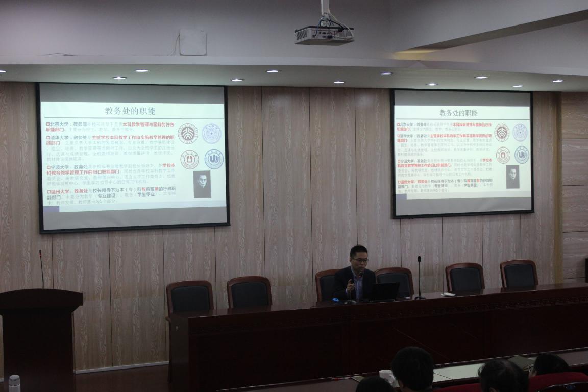 11月21日,为推进学校政策法规普及,深入学习学校相关文件精神,服务广大教职员工,bat365官网特邀请教务处处长余闯,创业人才培养学院副院长胡文超来bat365官网开展相关政策宣讲。两位同志分别就学校本科教学相关政策、创业教育支持政策等进行细致解读。此次学院邀请学校职能部门负责人深入基层宣讲学校重要政策法规的做法,既有利于学校政策的落地,也为教师们的教学活动和创业教育提供针对性的服务,受到了广大教师的欢迎和好评。