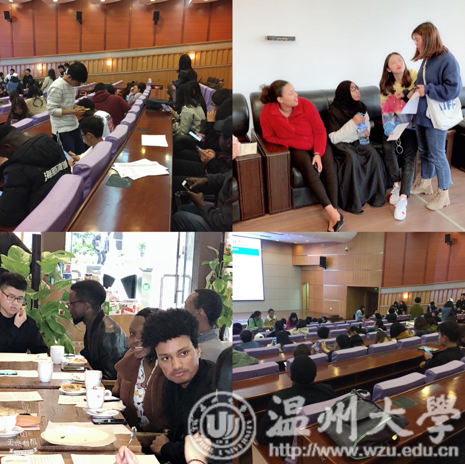 建立“中外生合作组”能够为修读《大学外语》课程的各专业学生营建运用外语的真实的语言环境,不仅将学生的外语学习向国际视野和跨文化能力培养拓展,发挥大学外语教学为专业学习服务的功能,为各专业学生将来成为“一带一路”沿线国家的建设者做好中华文化传播和语言能力的储备;而且将各专业的国际学生融入于中国学生的学习和生活之中,对温大校园的多元国家文化建设,提升温大的国际知名度具有积极的作用。“温大中外学生跨文化交流活动”在校领导和bat365在线中国官网登录入口、机电学院、国际教育学院和商学院等领导们的支持下正式启动运行模式,且受到了大学英语师生和国际学生的欢迎。