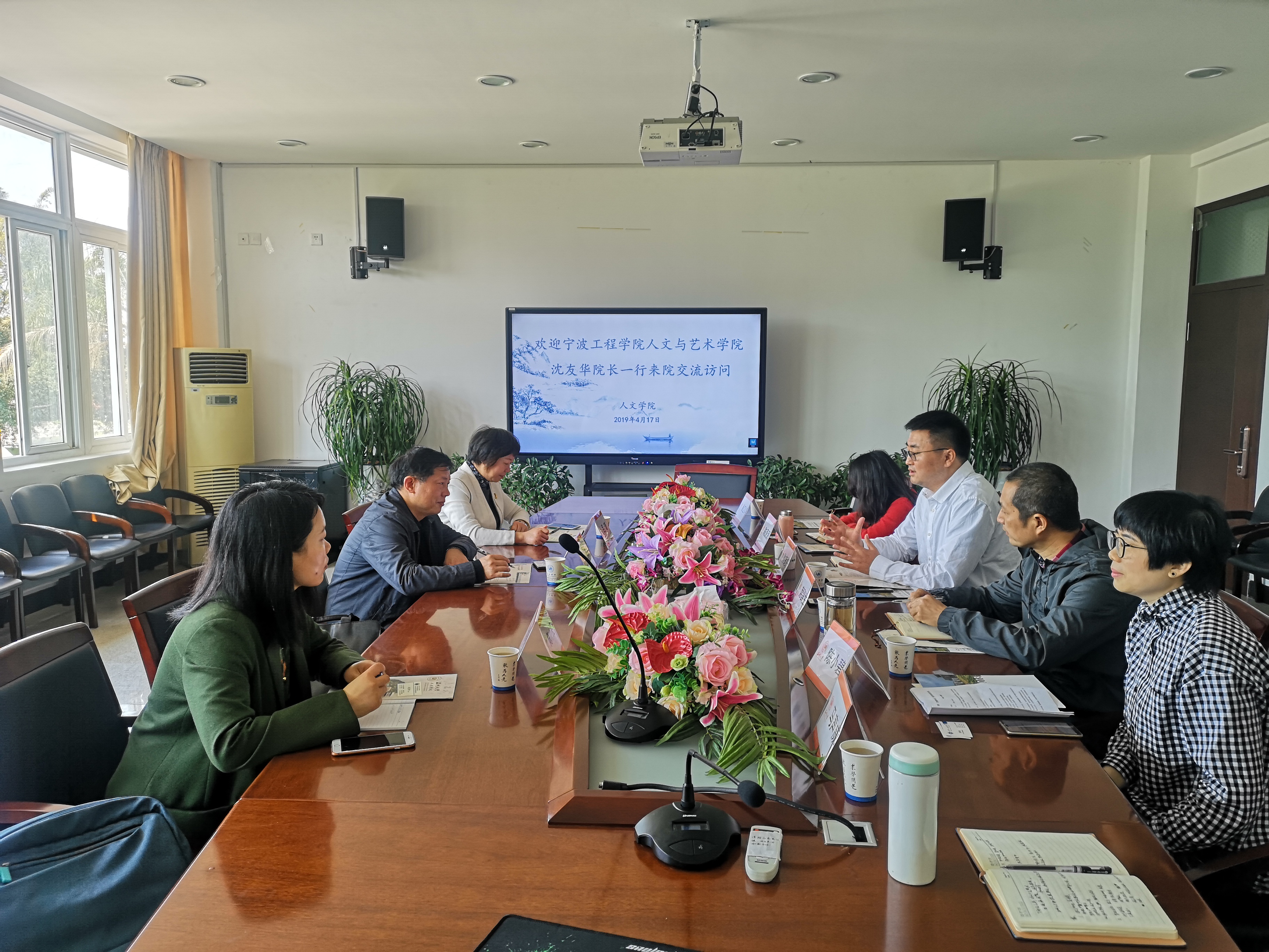 4月17日上午,宁波工程学院人文与艺术学院院长沈友华,副院长吕瑾及中文系副教授陈小亮来bat365官网交流访问。bat365官网孙良好院长、席留生副院长、中文系主任陈源源、广告系主任徐卫华、大学语文负责人陈小碧和办公室主任马声威热情接待了他们。双方就应用型学科专业建设、公共课程大学语文教学情况、专业硕士人才培养等方面进行了深入交流。