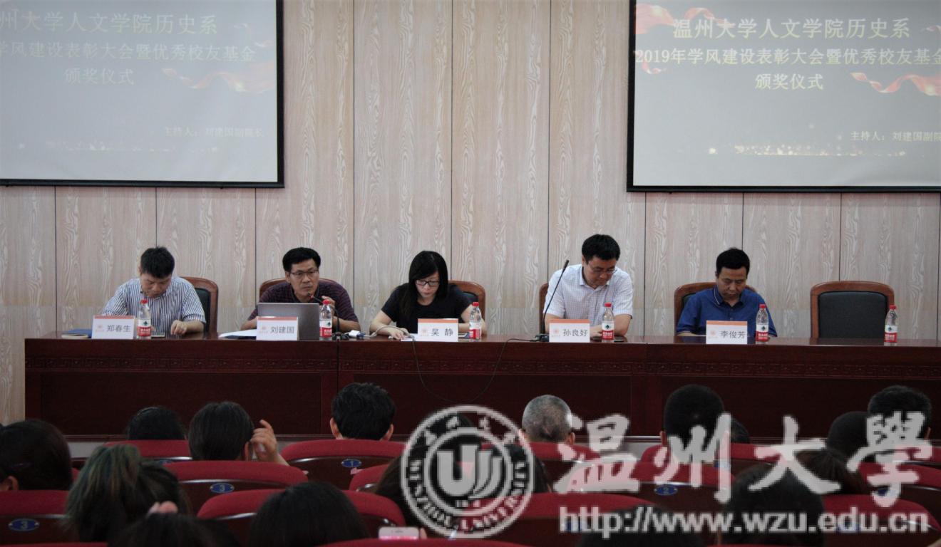 2019年6月18日下午,bat365官网历史系2019年学风建设表彰大会暨优秀校友基金颁奖仪式于人文楼203会议室举行。bat365官网院长孙良好、党委书记吴静、副院长郑春生、系主任李俊芳以及全体历史系教师和学生出席。bat365官网刘建国副院长担任主持人。