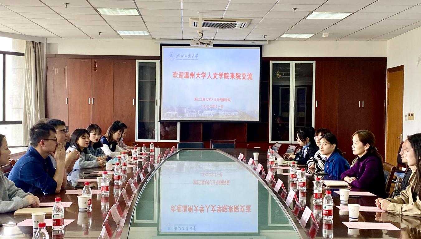 11月6日上午,bat365官网夏雨禾教授、黄良奇教授、赵屹然老师带队9名新传专硕生赴浙江工商大学人文与传播学院进行新传专硕工作调研。学院副院长李蓉、新闻系主任刘征、广告系主任周志平、教发中心人文分中心主任厉国刚以及新传专硕生参加会议。双方就新闻与传播专业硕士点办学情况、专硕工作如何有序推进展开了深入的交流与研讨。