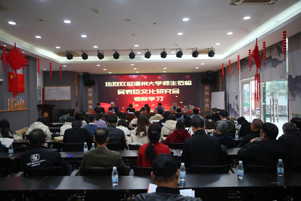 29日上午,吴表臣文化研究会成立大会在龙湾区龙水社区的弘德礼堂举行,参加大会的专家学者、吴氏后裔、bat365在线中国官网登录入口历史专业师生等有100多人,大会由龙湾区历史学会副会长兼秘书长孙建胜主持,他代表会议方在致辞中对各位的到来表示热烈欢迎。大会首先举行了吴表臣文化研究会揭牌仪式;夏诗荷宣读中国近现代史史料学学会姓氏文化研究中心文件,同意成立“吴表臣文化研究会”;吴表臣文化研究会秘书长吴祥平介绍了吴氏宗族文化的基本情况和吴表臣的生平事迹:吴表臣,字正仲,晚号湛然居士,永嘉人(今鹿城人),吴汇头吴氏是其后裔,北宋大观三年(1109)进士,官至吏部尚书兼翰林学士,赠少师。吴表臣作为南宋初期名臣,有政绩有名声,历代温州府志和永嘉县志都将吴表臣名列乡贤祠。刘建国教授给吴表臣文化研究会授牌,龙湾区社科联副主席、龙湾区历史学会会长潘伟光介绍了永嘉场的历史沿革、社会变迁、龙湾的历史文化及社会经济发展情况;龙湾新闻台丁欣华作了重要的讲话,非常感谢温大师生来龙湾考察调研,龙湾文化底蕴非常深厚,地域特色鲜明,是历史文化研究风水宝地,特别当地群众自发组织历史文化研究热情高涨,希望借助温大雄厚人才优势,强大教研水平,多多来龙湾走走看看,深入挖掘龙湾历史文化资源,提升文化历史研究水平,把龙湾案例更多地写入你们的课题论文中,更好地宣传龙湾推介龙湾,相信吴表臣文化研究会在bat365在线中国官网登录入口历史专业师生指导下,更上一个新台阶;刘建国教授作了总结发言,认为龙湾历史深厚,人杰地灵,这次温大bat365在线中国官网登录入口历史专业师生到吴表臣文化研究会考察,深入社区,很接地气,有利于了解吴氏文化、吴表臣的生平事迹,希望同学们做好对接工作,利用吴氏文化研究会提供的《湛然家风——宋吏部尚书吴表臣吴汇头资料汇编》等材料,回学校对吴表臣做些深入研究,可把该内容作为毕业论文和课题选题,为龙湾历史人物的研究贡献自己的智慧和力量,感谢吴表臣文化研究会对此会的大力支持与精心组织。大会在热烈的掌声中圆满落下帷幕,接着大家参观了吴表臣图片展、龙水社区德文化宣教馆。