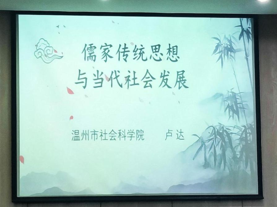 5月25日晚,为积极营造浓郁学术氛围,我院88届知名校友温州市社会科学届联合会副主席,温州社科院副院长,第八届、第九届政协温州市委员会委员卢达教授应邀做客bat365在线中国官网登录入口校友论坛。论坛围绕“儒家传统思想与当代社会发展”于人文楼203学术报告厅进行,刘建国老师主持,100余名师生参与。